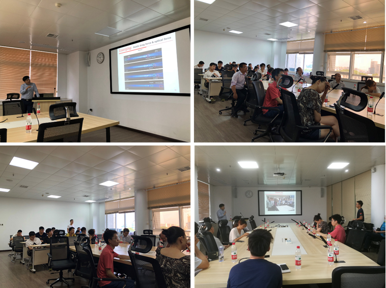 在长达两个小时的学术交流会中,仇教授作了题为“Structured Light to Manipulate Particles“的学术报告,介绍了光学力现象,包括负向拉力,可调横向力,手性力和石墨烯纳米传送带等的基本原理和实验结果,详细阐述了关于如何构造光束以及如何调整光和物质相互作用来实现功能化显微操纵等工作,同时对光在纳米粒子操纵上的作用进行了展望,引起在场师生强烈的兴趣。在场师生纷纷就自己的疑问与仇教授进行了交流,探讨了光学力现象能否用于光纤传感技术以及光学力现象在超材料,微纳米马达上的应用等问题。本次学术交流会极大地拓展了在座师生的视野,丰富了师生们的知识面,最后在一片热烈的掌声中圆满结束。
